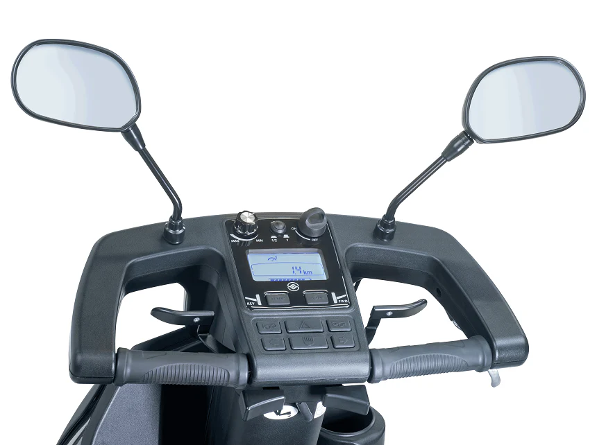 הקלנועית מצוידת במושב אורתופדי רחב, מסתובב ומתכוונן, המאפשר כניסה ויציאה נוחות במיוחד. בנוסף, כידון “דלתא” ארגונומי מעניק שליטה קלה ומדויקת, ומתאים במיוחד גם למשתמשים המתקשים להפעיל יד אחת בלבד.